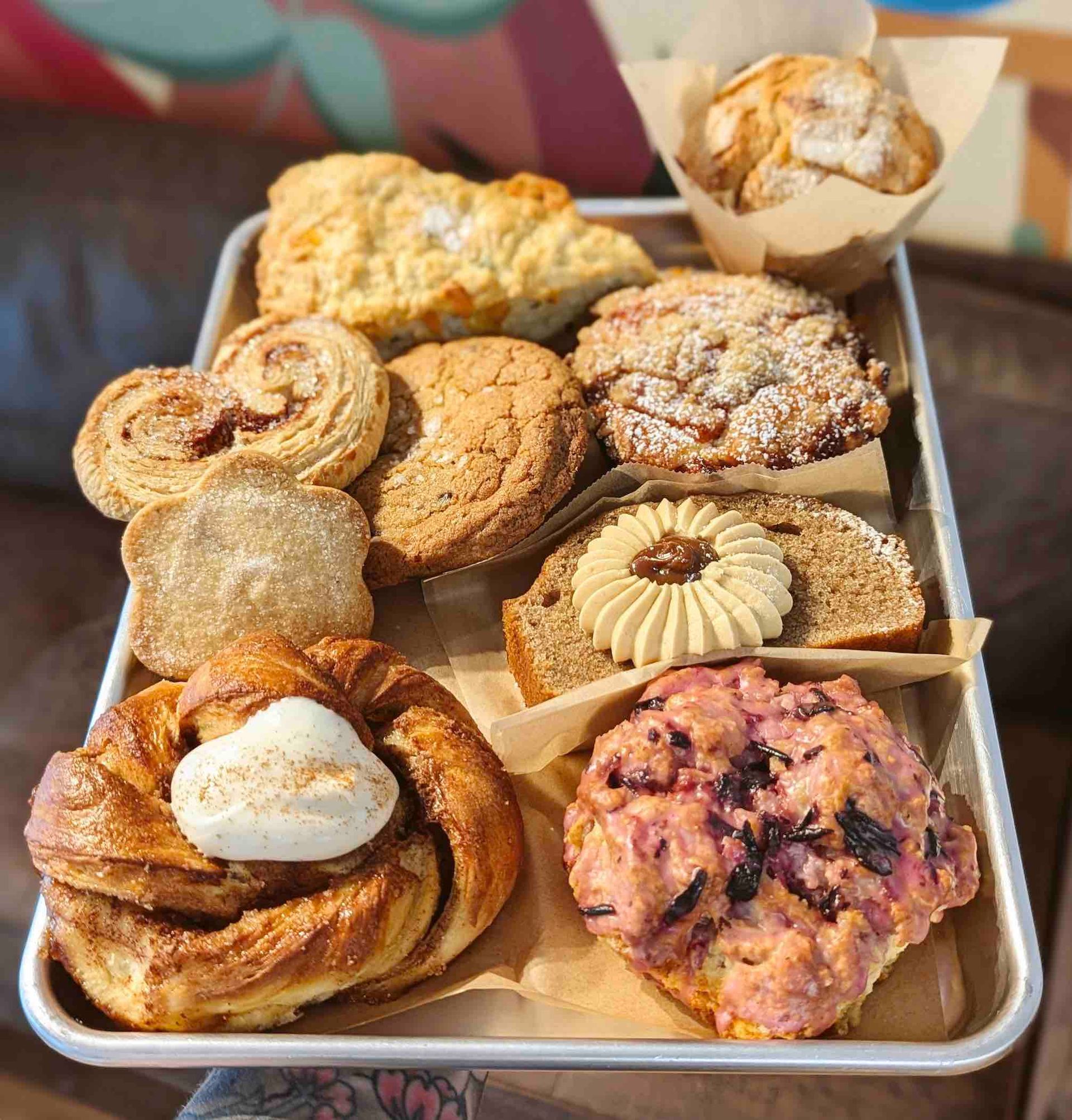 Lo-Fi Coffee House and Studio has been serving curated coffee, pastries and sold-out art workshops since May 2023. With a background in baking and beans owner Ashley Dahlke sourced an off-site commercial kitchen in January 2024 to take creative control of the shop’s offerings. They swapped their sourced-food options in favor of handmade pastries like Salted Brown Butter Chocolate Chunk Cookies, Bacon Jam Croissant w/Gruyere Cheese and Classic Iced Cinnamon Buns.